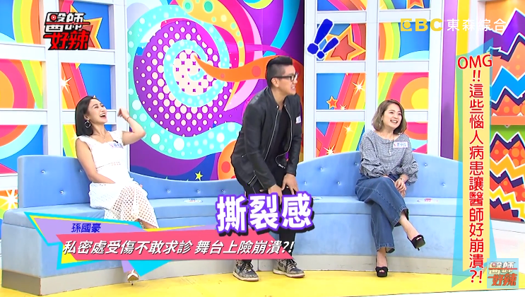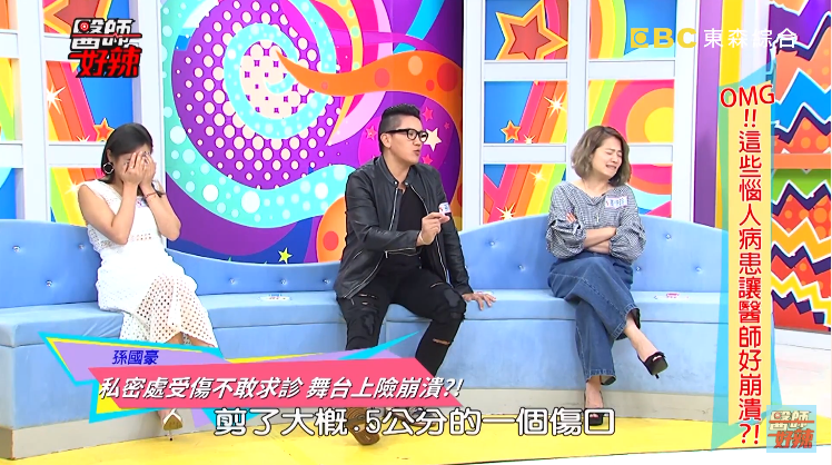 聽完孫國豪的慘痛經驗,現場來賓一陣哀號,聽了都能感受到當下的疼痛。不過孫國豪說,當時他心想是不是該去掛急診,但礙於自己是藝人身分,不好意思跟醫生開口,又怕會傳出奇怪的傳聞,因此只好在家裡用藥用酒精、碘酒及OK繃簡單處理。更慘的是,在「蛋蛋受傷」的隔天,孫國豪還得去參加李國修執導的舞台劇彩排,但李國修老師對於彩排非常嚴格,幾乎視同表演,所以一定要很投入。