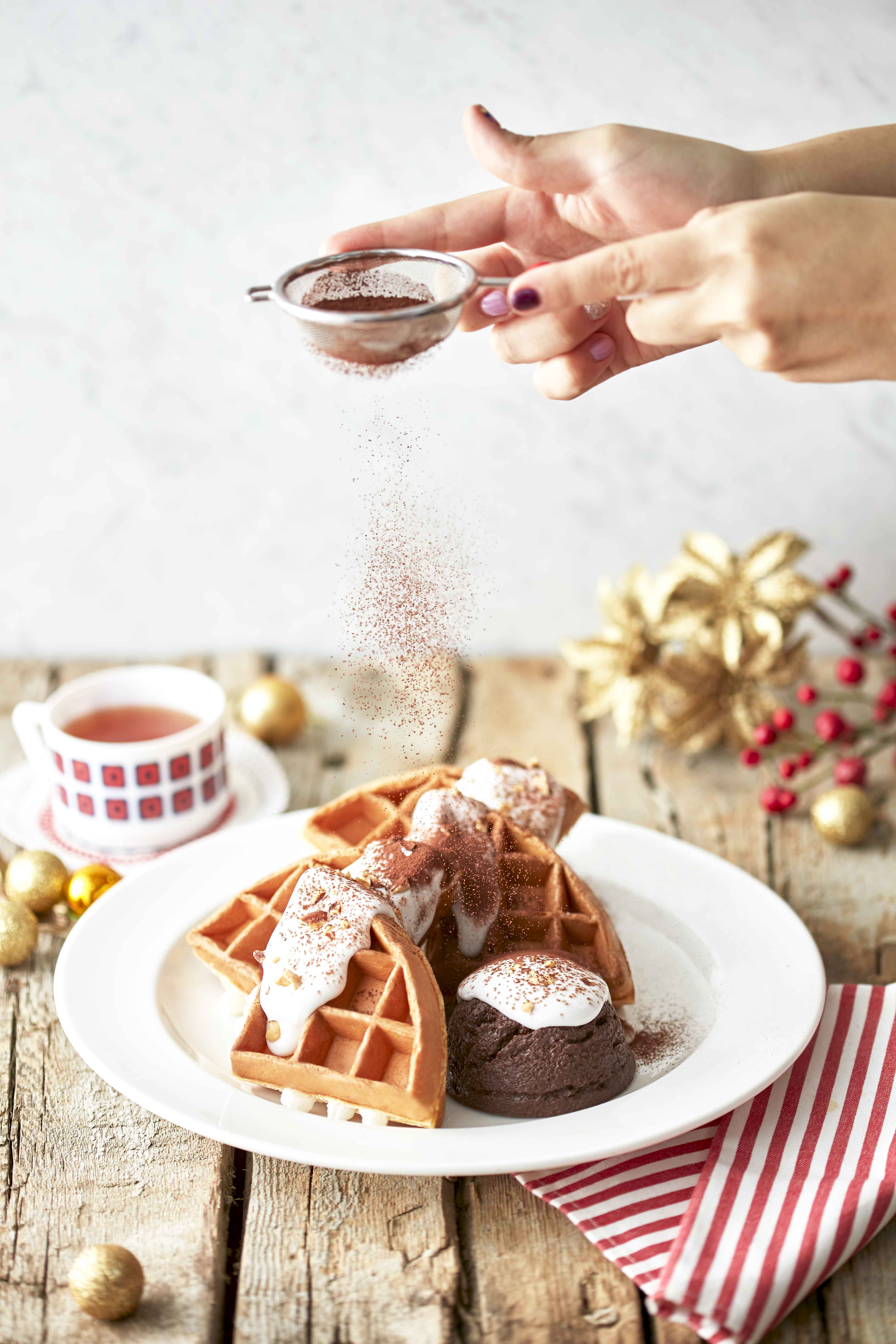 #黑可可摩卡麻糬冰淇淋鬆餅(280元)