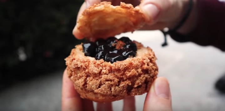 第三站「樹 go eat」,酷的夢轉換口味,品嚐IG熱門甜點泡芙,只見泡芙比手掌還大,內餡也不馬虎,其中珍珠口味泡芙,算一算珍珠的量大概有8顆,酷的夢吃下第一口後睜大雙眼「奶餡很香,不會太甜,也不會吃膩,珍珠超級Q,內餡有稍微咖啡香」。