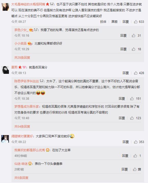 對此,有音樂專長的網友也看好歐陽娜娜的音樂天賦,並表示「太牛了,這個能滿分其他的真的不重要」、「視唱練耳是天賦和努力缺一不可的科目」,不過也有部分酸民聯想歐陽娜娜過去的演技表現,並說到「不演戲都好」,就有粉絲護航歐陽娜娜的演技其實一直有在進步。