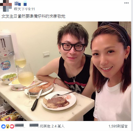 先前一名廖姓男網友在臉書「爆廢公社」PO文,寫著:「女友生日當然要準備好料的來孝敬她。」還附上兩人的甜蜜合照,沒想到仔細一看,照片中的女主角竟然是大牙。只見大牙男友做了一桌好菜,還放著兩杯酒,小倆口享受著甜蜜晚餐,而大牙也在IG PO出滿桌好菜的照片,寫著:「生日大餐!大魚大肉大口喝酒~」小倆口竟大方公開曬恩愛,也讓臉書上掀起一陣騷動。