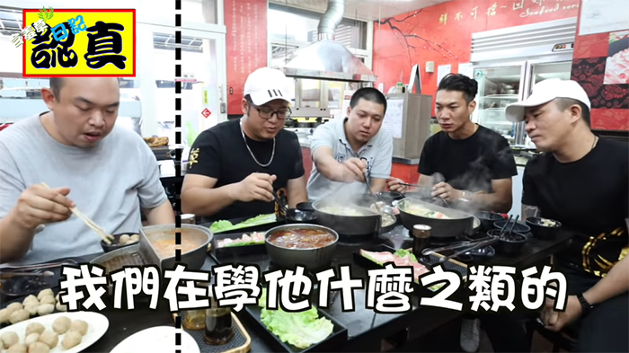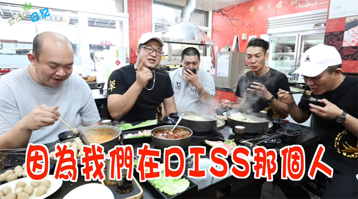 另一方面,過程中草爺提到:「有人說我們在學他們什麼之類的」,他也說明:「重點是系列不同,我們是一個人吃,他們是一群人」,他更搞笑表示:「如果說照這種想法的話,很簡單,我們的年紀應該比他們早出生一點點,那代表他學喝奶也是學我們的囉?」,更開玩笑嗆聲:「你在跟風什麼啊」,之後他也對片師喊話「這段要剪進去喔,因為我們在diss那個人」。