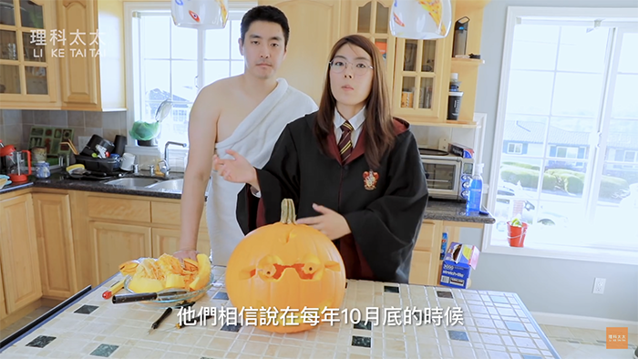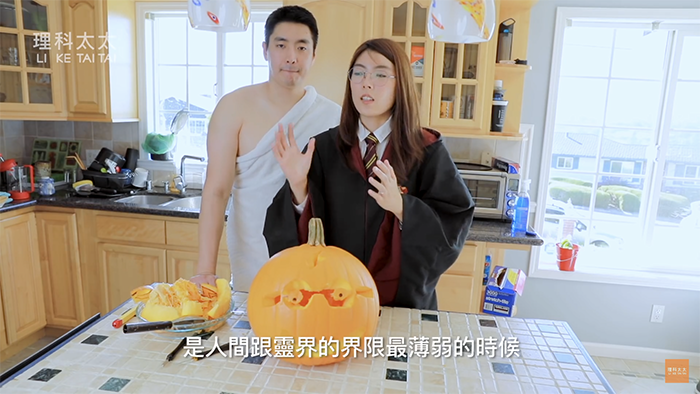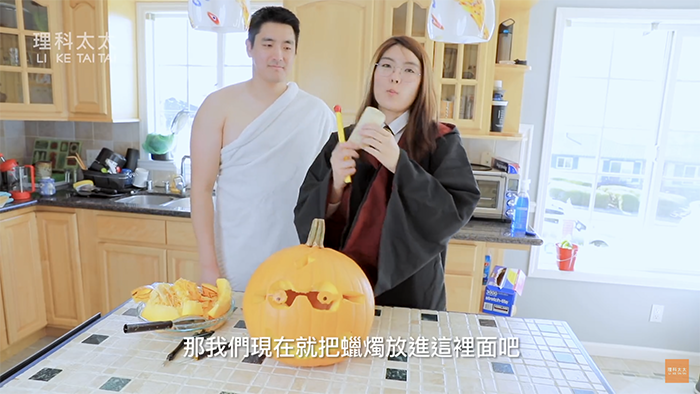 知名YouTuber「理科太太」是哥倫比亞大學生物醫學工程的碩士,時常在頻道「理科太太 Li Ke Tai Tai」分享生活中的科學影片而竄紅,相較其他YouTuber,理科太太僅拍攝富有教育意義,又絲毫不會生硬的影片,流利的口條讓觀眾能輕鬆吸收知識,受到許多粉絲喜歡,頻道成立不到半年,已有超過27萬人訂閱。近日,因應萬聖節的到來,理科太太要和先生一起用魔法製作萬聖節必備的「南瓜燈」。