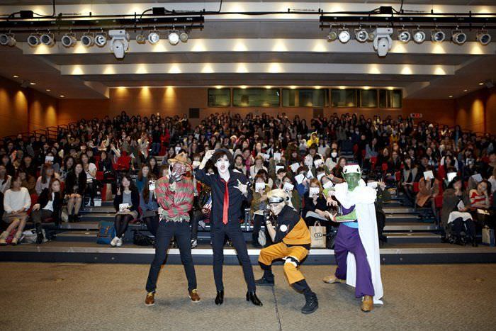 而且當時「SHINee」還是先穿去參加簽售會,後來結束簽售會後,趕過去派對現場時才發現大家都沒怎麼變裝,就只有他們這麼認真,那時候的「鳴人(鍾鉉)」還發表了感想表示:「就像在裸體沙灘卻只有我們脫光的那種感覺。」於是SHINee的成員們就像雕像和觀光客一樣被各個藝人抓著瘋狂合照。