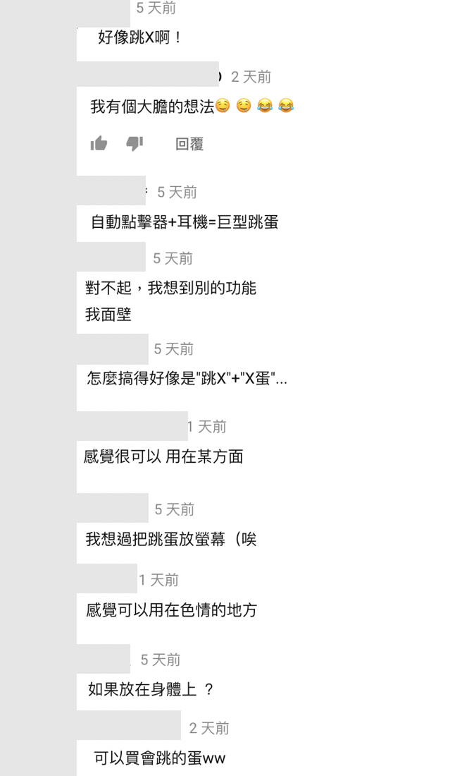 看完影片後網友紛紛歪樓表示:「好像跳X啊!」、「對不起,我想到別的功能 我面壁」、「如果放在身體上 ?」、「我想過把跳蛋放螢幕(唉」、「怎麼搞得好像是"跳X"+"X蛋”…」、「所以女生可以放在…..」、「我有個大膽的想法」、「感覺很可以用在某方面」、「感覺可以用在色情的地方」、「可以買會跳的蛋ww」
