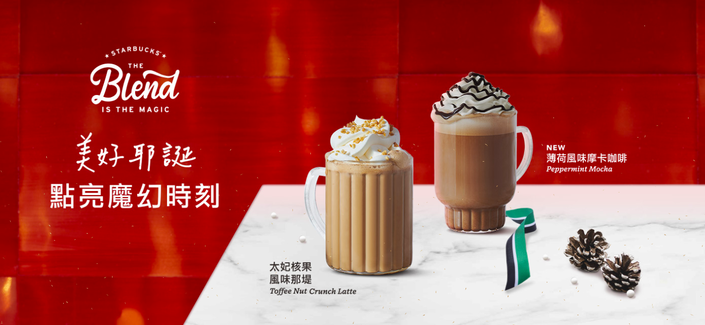 在巧克力醬和薄荷風味的糖漿中加入經典濃縮和現蒸牛奶,搭配成完美比例,甜蜜帶點清新的味道是最多人期待回歸的高人氣經典耶誕飲料。