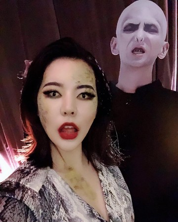 少女時代Sunny在變裝趴中扮成《怪獸與葛林戴華德的罪行》中佛地魔的愛寵「納吉尼」。Sunny在裝扮上可說是極其用心,不但在皮膚畫上蛇皮,頭髮的部分則是用亮片製造出蛇麟附在身上的感覺,再戴上特殊隱眼,也塑造出細長貓瞳的視覺效果。