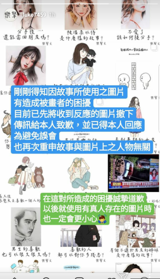 而同時樂擎也在限時動態中打上:「目前已傳訊息給本人,並已得本人回應,為避免誤會,也再次重申故事與圖片上之人物無關」,更誠摯道歉,引起廣大討論。