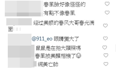 部份網友認為春風的臉部線條不太自然,甚至有些認不出來,故網友便推測這張照片應該有使用美肌!粉絲們也紛紛在許維恩的PO文底下流言到:「經過美顏的大哥春光滿面」、「眼睛變大了」、「春風被美顏相機了。」一張兩人的合照,結果焦點全被春風大歌搶走啦!