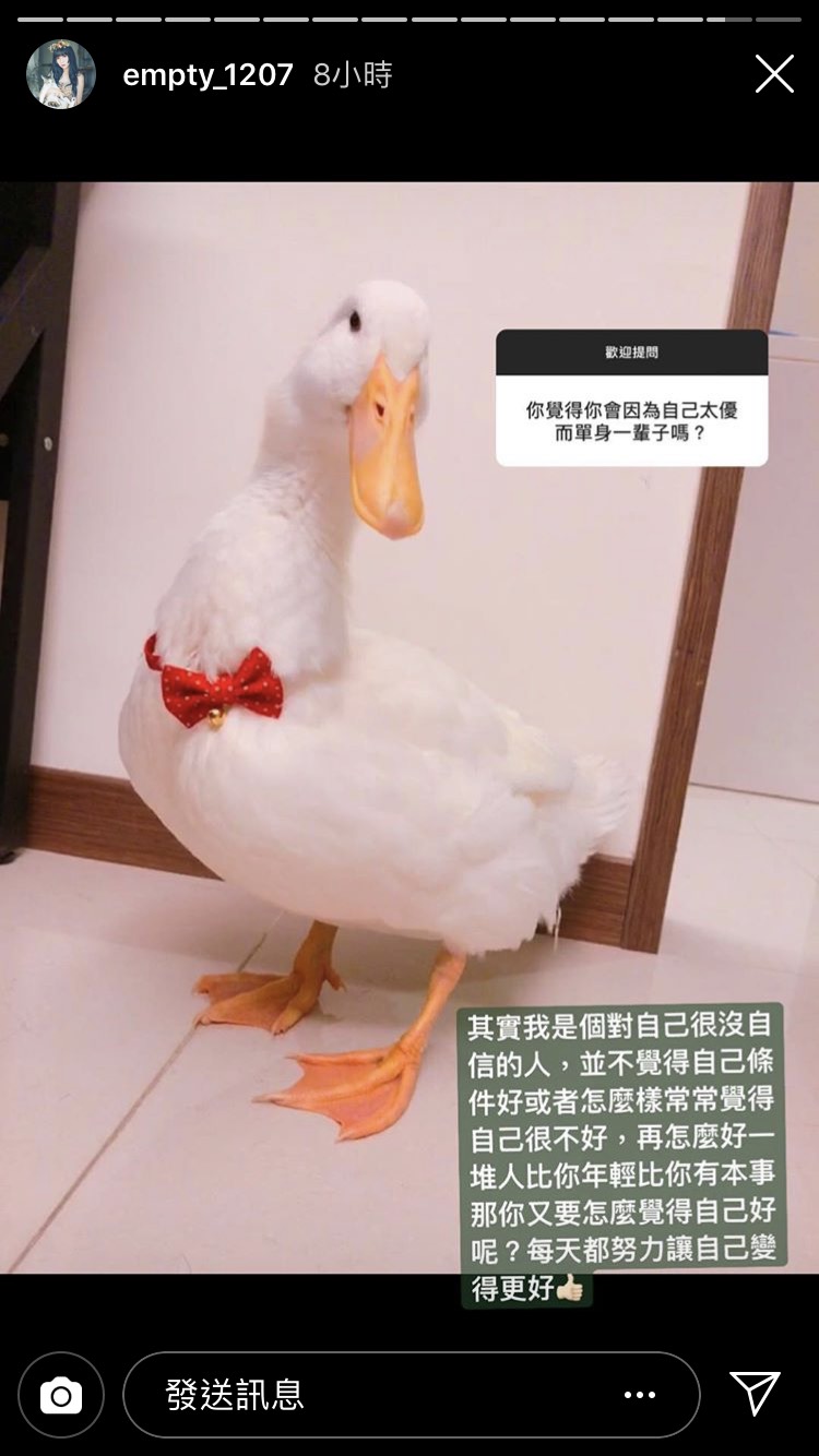 除此之外本本也回覆另一粉絲提問:「你覺得你會因為自己太優而單身一輩子嗎?」,沒想到本本卻表示自己很沒自信,「並不覺得自己條件好或者怎樣,常常覺得自己很不好」,表示因為比自己年輕、有本事的人大有人在,「那你又要怎麼覺得自己好呢?」