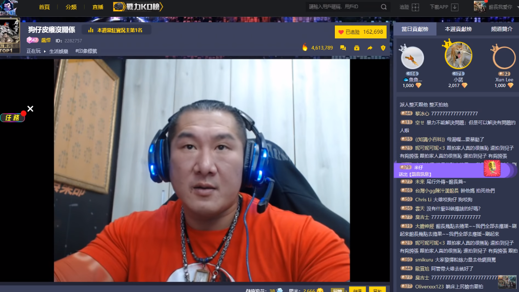館長因為私下為成吉思汗健身俱樂部的老闆,也被粉絲暱稱為館長、阿館。館長過去常常在開台直播針對時事發表示自己的看法,霸氣又中肯的談話風格肯深受粉絲喜歡,不過館長相當注重家人隱私,近日館長老婆被狗仔拍攝素顏照,館長也在直播時暴怒開嗆,更直言「我不動你我不是男人」。