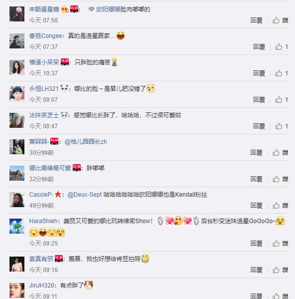 8日,由美國知名內衣品牌維多利亞的秘密(Victoria's Secret)將在紐約盛大舉行一年一度的時尚秀,聚集20位超模總是外界相當注目的典禮。7日,維多莉亞的祕密官方網站也宣布參與名單,其中音樂才女歐陽娜娜,也首度成為與會嘉賓,今日一早,歐陽娜娜也在社群平台上分享在後台和各大超模的合照與互動影片,不過,長期關注歐陽娜娜的粉絲也發現,歐陽娜娜的臉明顯圓潤不少,甚至玩笑表示「簡直看著歐陽娜娜一天天變胖啊」。