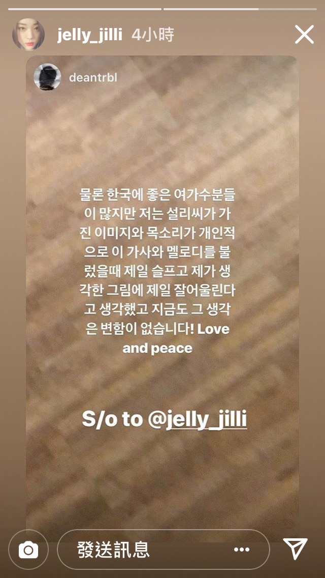 為此,歌手Dean甚至在Instagram上說明這首歌非常適合雪莉,並解釋「因為我覺得她給人們的印象與她的聲音在唱著歌詞和旋律的時候是最悲傷的」,並表示到現在還是相信自己的決定,不受外界影響。