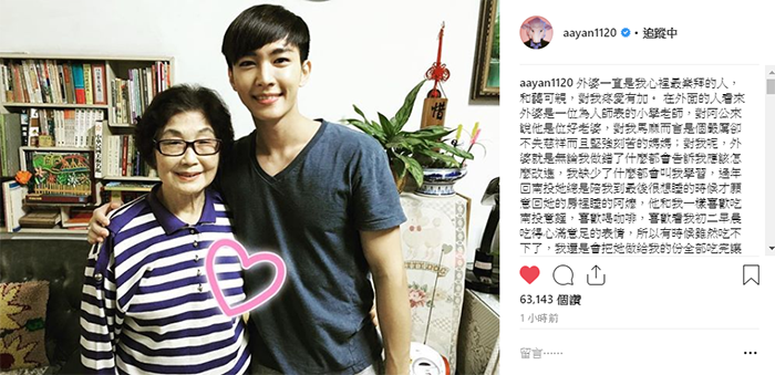 炎亞綸在IG透露,外婆一直以來都是他心裡非常崇拜的對象,和藹可親又對他疼愛有加,無論他做錯什麼,都會告訴他該怎麼改進,少了什麼就要他學習,他和外婆的感情一直都很好,「他和我一樣喜歡吃南投意麵,喜歡喝咖啡,喜歡看我初二早晨吃得心滿意足的表情」。只不過今年8月,外婆被診斷出癌症,且已經擴散至全身,全家人都不敢置信,醫生雖然說不樂觀,但外婆求生意志一直非常強烈,因此家人安排了比較不痛苦的療程。