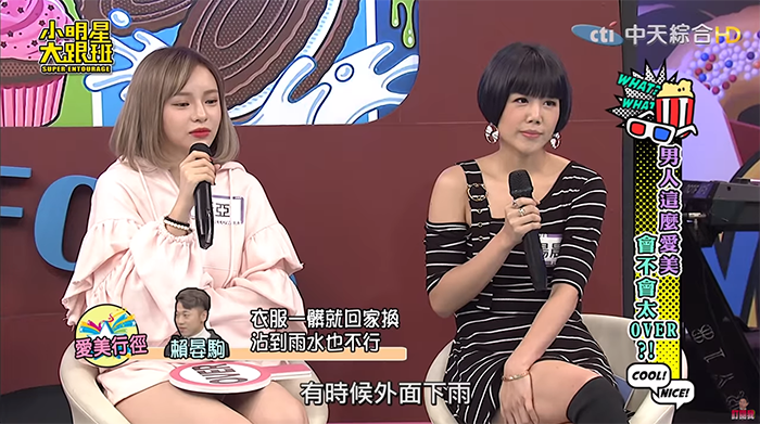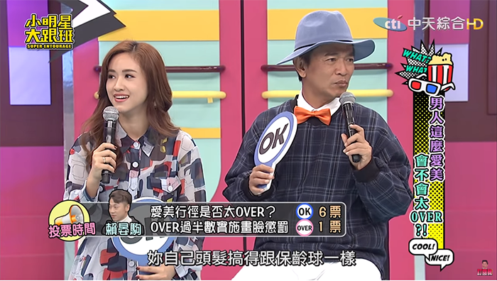 楊晨熙當面指控劉家成有很大的偶像包袱,表演前不參加討論,卻只在意自己的髮型有沒有亂掉,讓現場來賓笑翻。接著針對小賴的愛美行徑,楊晨熙又不能接受,吳宗憲也看不下去直說:「你自己頭髮搞得跟保齡球一樣,我們都沒講你了。」