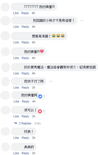 影片上傳之後,許多喜愛小熊的粉絲都打下:「我484看到假的小熊 感覺長大了」、「小熊好美RRR」、「我好興奮R」、「這不是小熊!這是誰」、「很可以!」、「我快不行了阿」、「這是大熊不是小熊」、「我好興奮阿」、「我認識的小熊才不是長這樣!」、「很漂亮喔」。
