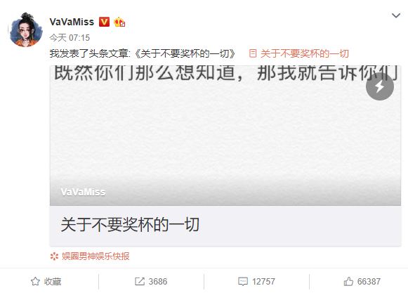 種種不合理安排讓VAVA終於忍不住在頒獎時口出怨言,文中說到「願意承擔」失控發言的後果。VAVA解釋希望典禮中每個人能「相互尊重」,並且顧及各項細節的專業,VAVA此次發言雖然嚇壞大家,但也是為了典禮整體專業形象。