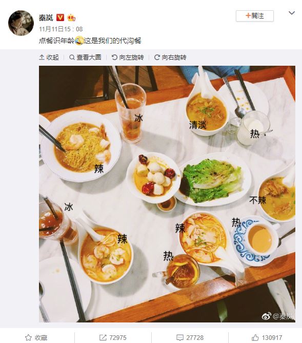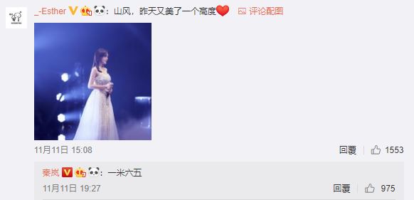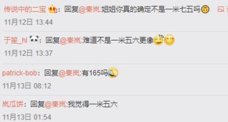 秦嵐為維持身材和健康似乎也下了不少苦心,11日晚上,秦嵐在微博上分享「代溝餐」。照片中擺滿了一桌菜,其他人都吃辣喝冰飲,只有秦嵐不僅要求吃清淡,就連飲品也堅持喝熱的,粉絲發現秦嵐維持身材的祕密就分享了一張全身照,並留言「昨天又美了一個高度」,秦嵐卻玩笑說到「一米六五」,自曝自己的實際身高,不過不少網友竟說到「你確定不是一米七五」,也有人說「一米五六吧」。