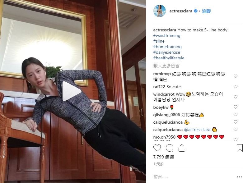 事實上,克拉拉的好身材有賴於平日的積極運動和飲食控制,15日,她突然在Instagram上貼了自己訓練S曲線的運動短片。影片中,克拉拉分享居家運動方式,她透過一張椅子輪流訓練側腹肌,以及上下爬椅子的運動,看起來臉不紅氣不喘的,讓網友直呼真的很厲害。
