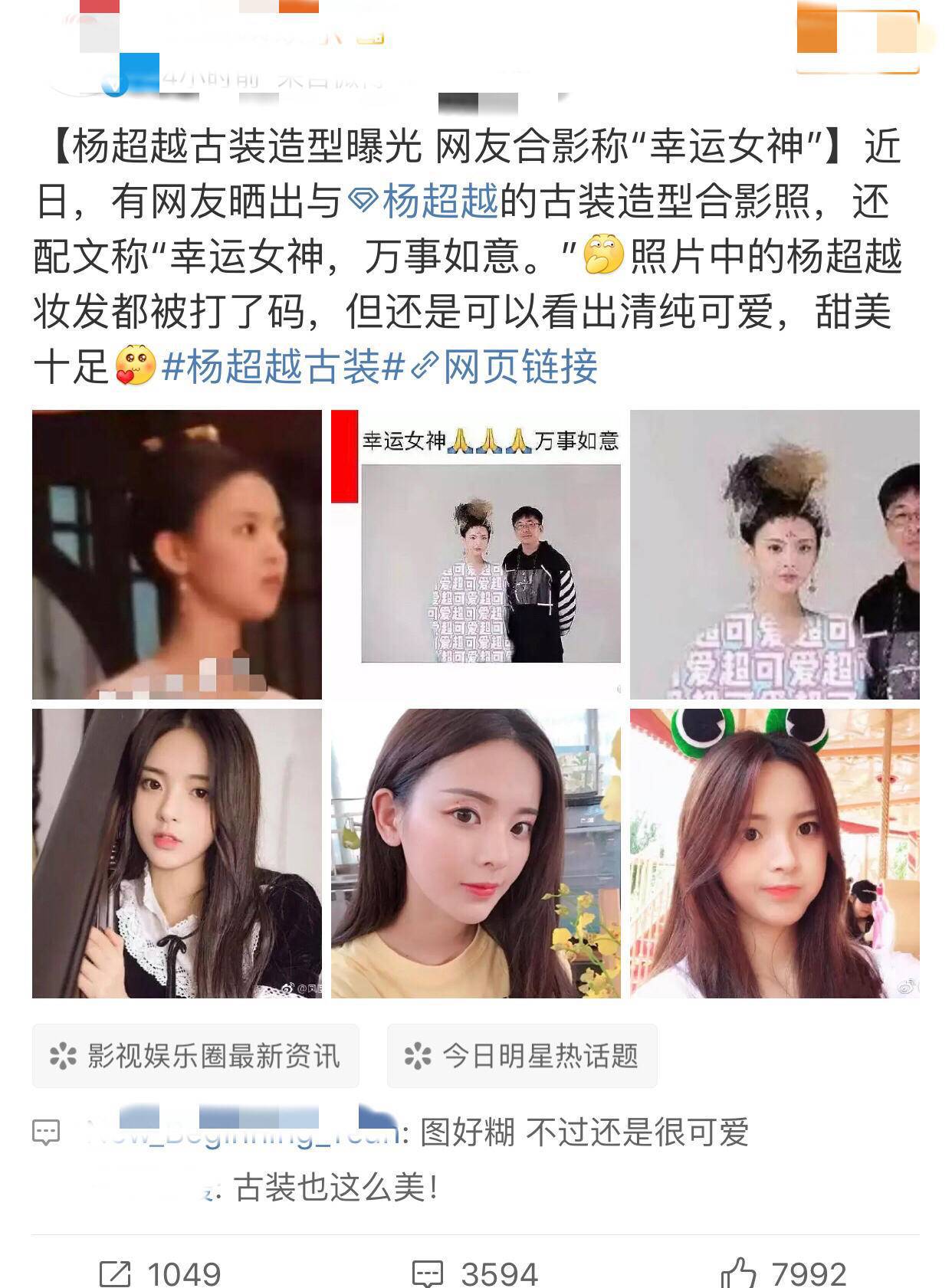 而楊超越最近宣佈拍古裝劇《長安諾》,近日片場側拍照外流,楊超越的古裝造型也隨之曝光,因戲劇尚未播出,所以雖照片流出,但都在重點造型(衣服、頭飾)上打上了馬賽克以保密。雖重點造型部分都被馬了起來,但這對楊超越整體造型的顏值似乎沒有產生太大的影響,大部分網友都覺得「楊超越」古裝造型依然是相當好看!相較於「吳宣儀」的清新脫俗,「楊超越」的古裝看起來多了一份高貴典雅!拍戲重的主要是演技,楊超越的演技如何,仍還是個未知數,不過單看造型,楊超越的顏值依然是遙遙領先呀XD