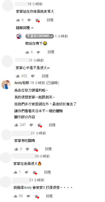 影片播出之後,特別的體驗也引起網友討論:「有一點母湯」、「家寧站在你後面他非常火」、「家寧心中是不是很火」,「家寧友吃醋嗎」,而Andy則搞笑表示:「她站在樓下」,不過其實他也解釋自己真的很想跟家寧一起,只可惜被拒絕才作罷!