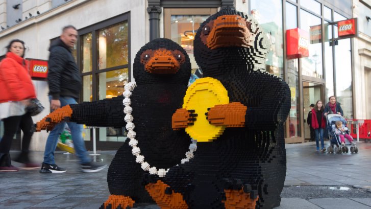 目前已知有7 隻玻璃獸被樂高公司製作出來,身上披掛著他們最愛的金幣、珠寶,遊蕩在英國倫敦街頭,尤其是在高級精品區:包括哈頓花園的鑽石特區、藏有英國珍貴皇冠的倫敦塔以及位於萊斯特廣場的樂高玩具公司….畢竟,那邊才有玻璃獸最愛的珠寶啊!