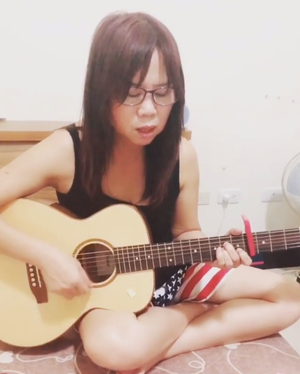 茵家出美女!茵聲媽「吊嘎短褲」吉他自彈自唱,網友大驚:這是姊姊吧!