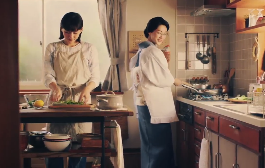 而已婚的女演員更是不遑多讓,反而能拍攝更多元的內容,像是上戶彩、木村文乃、佐佐木希等人,給人的家庭感更強烈,也更可以展現活力人妻的一面,讓女明星們穿上圍裙在廚房用心地為家人做飯,完成後再和家人一同和樂共享的畫面,一方面貼近觀眾平常的生活,另一方面更能給觀眾看到女明星平常看不見的一面,這對觀眾是非常新鮮的題材,觀眾也很吃這一招。