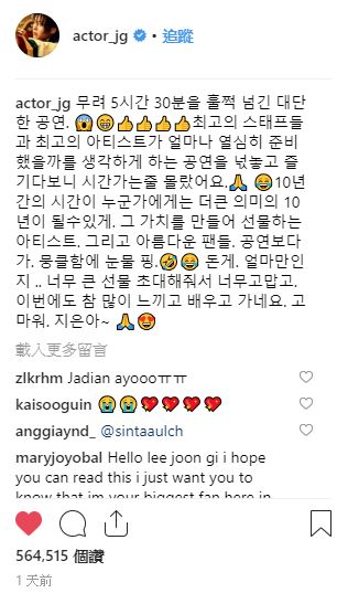 17、18日IU接著前往韓國首爾舉辦國內最後一場演唱會,這兩天站台的嘉賓也都是大咖雲集,完全展現了IU在演藝圈中的好人際。像是曾經以戲劇《步步驚心:麗》和李準基相識,李準基當晚除到場支持,更在IG上曬出合照,並盛讚IU的表現說到「5個半小時的演出真的非常了不起,10年的期間對任何人來說都有著與眾不同的意義。」甚至表示坐在台下忍不住流下男兒淚,最後也感謝知恩給她一個美好的聽歌經驗。