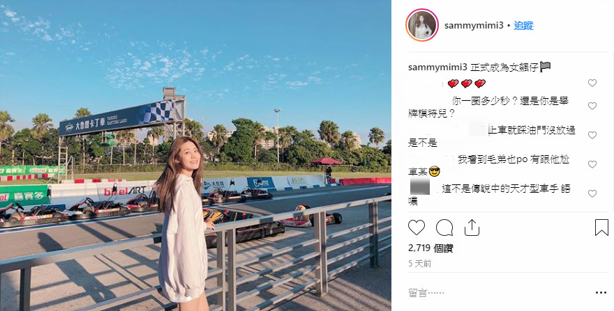 接著上周毛弟又PO出在桃園大魯閣Go Kart賽車場的照片,寫著「真的很喜歡賽車!!喜歡到想比賽哈哈」;果然沒多久張語噥也PO出賽車場的照片,寫著:「正式成為女飆仔」,兩人曖昧的互動連網友都有所察覺,還問張語噥「有跟毛弟尬車嗎?」