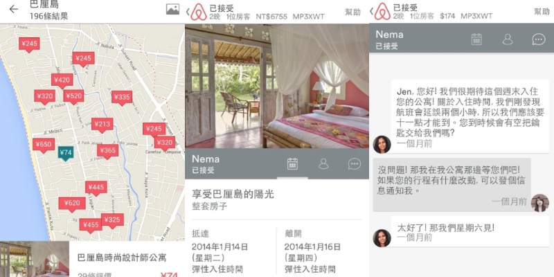 相較於agoda以飯店為主的訂房系統庫,Airbnb的訂房系統庫主要提供的是不少親朋好友們團體出遊時最喜愛選擇的民宿類型,除了操作介面淺顯易懂之外,能透過APP中的對話框隨時與房東保持聯繫也是獲得網友們力推的主因!