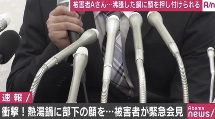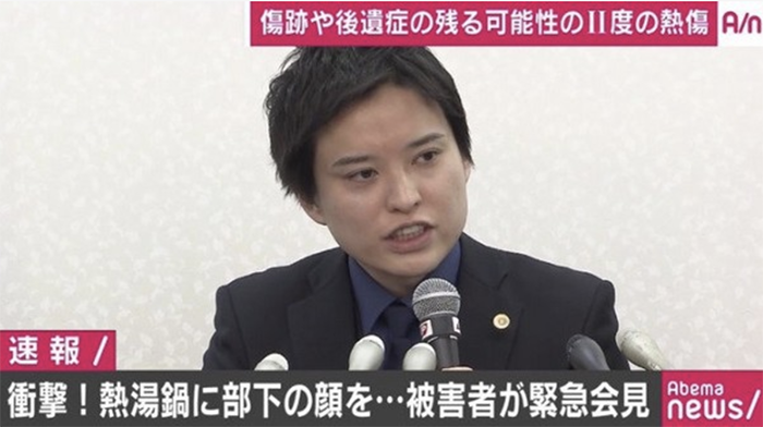 近日,日本一間娛樂公司社長遭指控,在2015年12月尾牙時將男員工的頭壓進滾燙火鍋,讓該名男員工臉部嚴重灼傷。22日時,該名男員工和律師出面召開記者會。