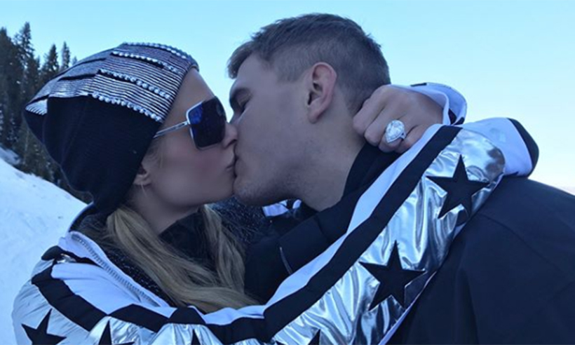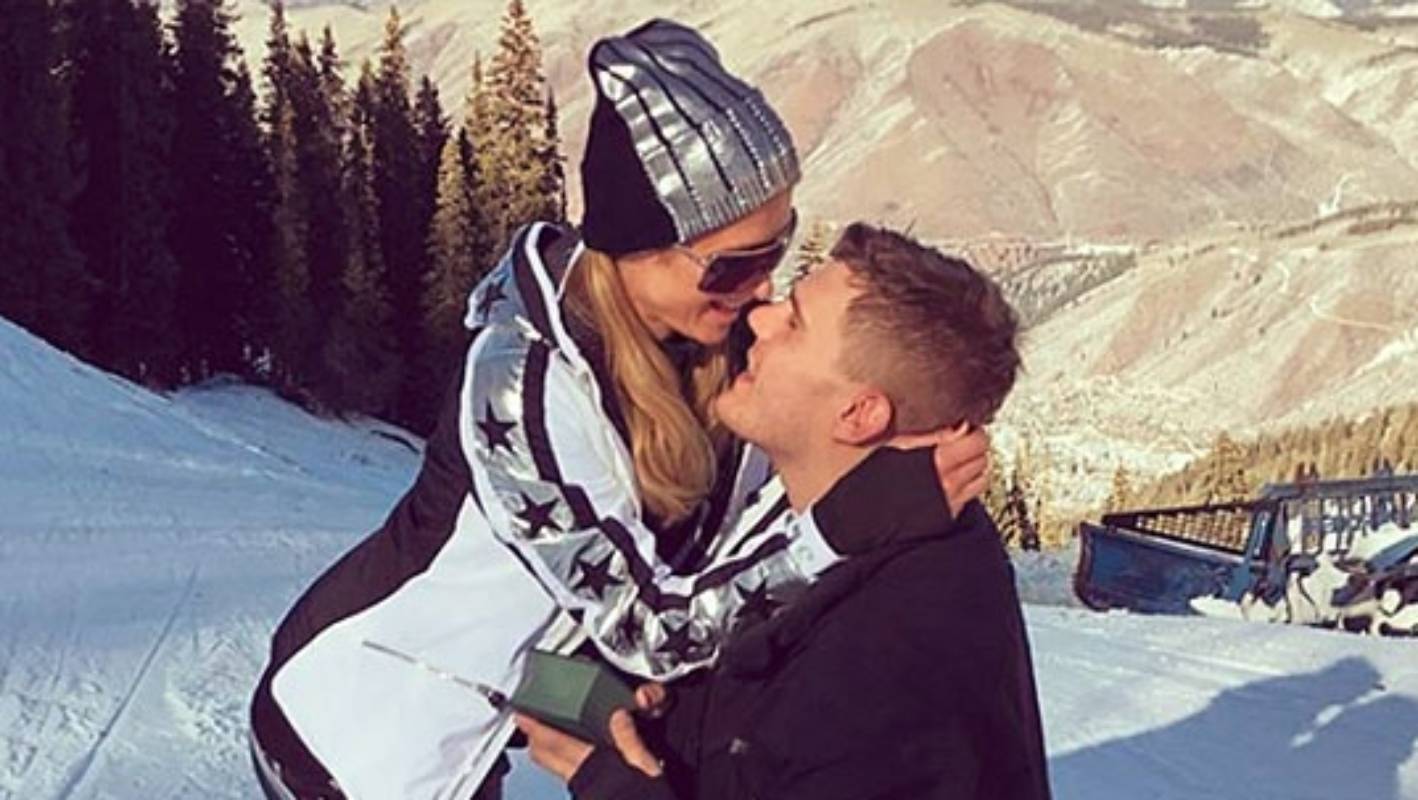 ▼芭莉絲希爾頓(Paris Hilton)先前與男星克里斯澤爾卡(Chris Zylka)於滑雪場求婚的浪漫照片,當時還有雜誌特別刊登,超浪漫的瞬間,手上的 20 克拉鑽戒也超耀眼。