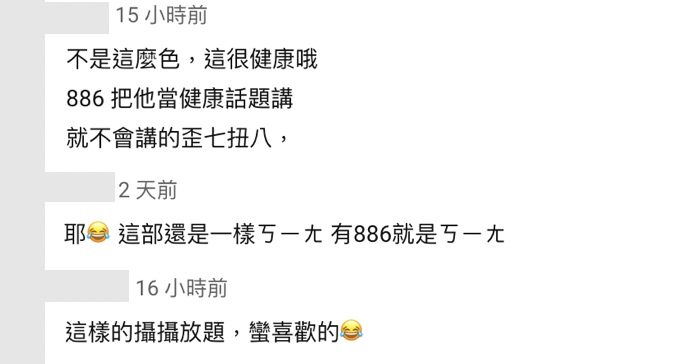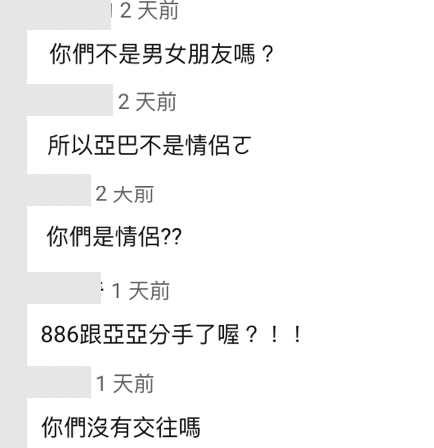 其中還有許多較為18禁的問題,像是「什麼時候69」、「你最喜歡什麼姿勢」、「巴巴烙一天晨X幾次」等,亞亞和巴巴烙都以幽默風趣的回答帶過辛辣的問題,看完影片的網友也紛紛留言:「不是這麼色,這很健康哦,886 把他當健康話題講 就不會講的歪七扭八」、「耶 這部還是一樣ㄎㄧㄤ 有886就是ㄎㄧㄤ」、「這樣的攝攝放題,蠻喜歡的」,也有不少網友非常關注他們的感情,說道:「你們不是男女朋友嗎?」、「所以亞巴不是情侶哦」、「886跟亞亞分手了喔?!!」、「你們沒有交往嗎」