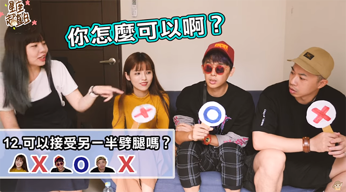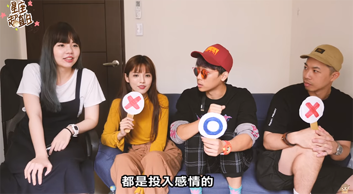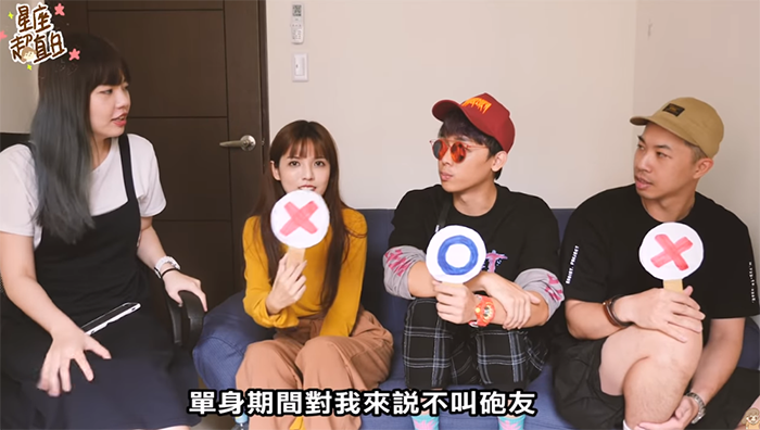 最後的超直白詢問大家「能不能接受炮友」,酷炫本來選X,不過在大家的質疑之下他也將牌子改成O。「單身期間對我來說不算炮友,對我來說每個相處過的人都是有投入感情的」,他表示過去曾有過一位喜歡的女生,但是兩人因為一開始就知道不會有結果,「但是我們彼此相愛」,這樣在有感情前提下的相處雖然不是男女朋友,也不能稱作炮友,而他後來也笑稱:「現在其實社會上很多這種好不好,賣假喔」。