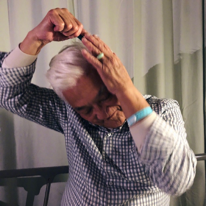 27日晚間,鄧紫棋分享和外公在醫院裡的合照,文中也透露外公因為血糖飆升住進醫院,鄧紫棋趕忙搭機前往上海看外公。照片中的外公笑得十分燦爛,不過鄧紫棋透露,剛到醫院時外公正在睡覺,一看到是孫女來了,鄧紫棋表示「看到我立馬整個彈起來,好開心的問為什麼我會在」,此外,為了跟鄧紫棋合照,外公竟「立即拿那個梳子說要梳好頭髮跟我拍照」,外公的滑稽舉動似乎讓鄧紫棋擔心的情緒獲得緩解。