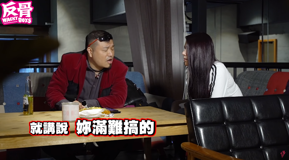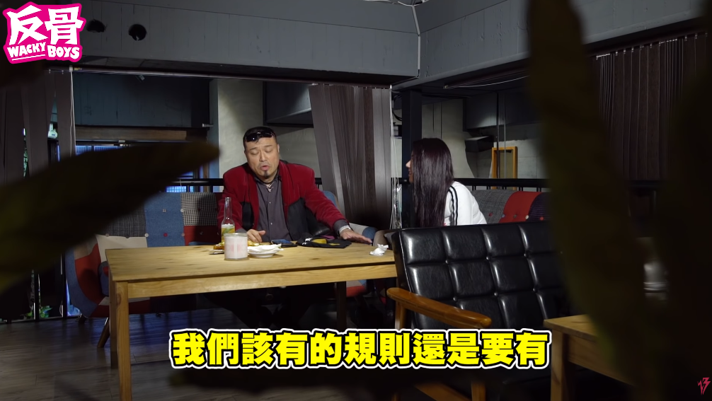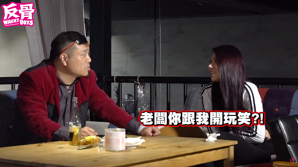 老闆一開口便妙語如珠,非常有反骨的風格,「腿特長,其實我也蠻長的,因為每個人都有一技之長嘛」,蕾菈則傻眼難以接話。不僅如此,後來老闆仍屢開黃腔,讓她相當不知所措,尤其老闆說到:「聽說妳難搞的」時,蕾菈更默默往旁邊移位子,對於老闆相當戒備。