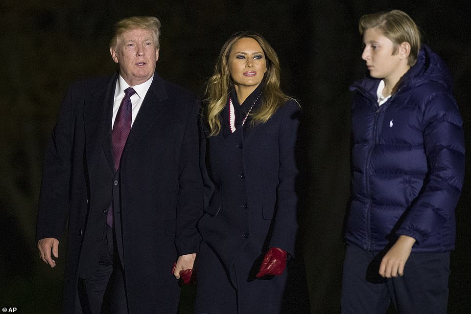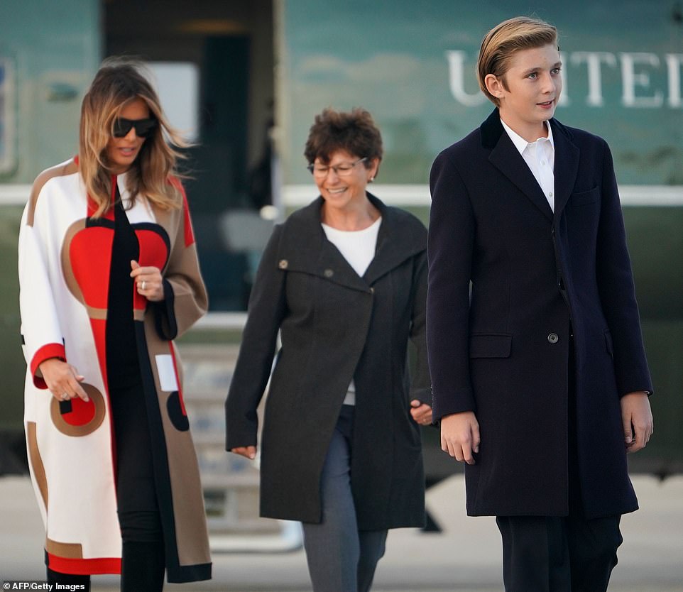 ▼美國媒體注意到 Barron Trump 在這兩年內已經追上了總統爸爸川普的身高,在才小學畢業的年紀身高就已經達到了 190 公分,而繼承爸媽金色頭髮的 Barron Trump 現在陪伴川普夫婦出門時,也總是往後梳著油頭。