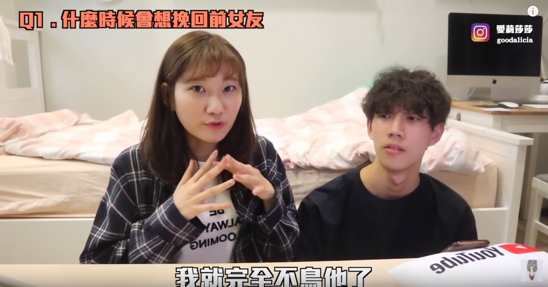 五題問答中,其中的Q1「什麼時候會想挽回前女友?」,也意外讓她自爆以前被甩的經驗,她回憶過往:「我以前比較不會談戀愛的時候,常常被甩,我以前對我前男友都很好,可能天天去找他之類的。然後對方可能就會覺得有點煩,把我甩了以後呢,我就完全不鳥他了,因為我這個人就是可以抽離的很快。」不過她也說只要哭一場,隔天就會容光煥發,又是全新的自己。