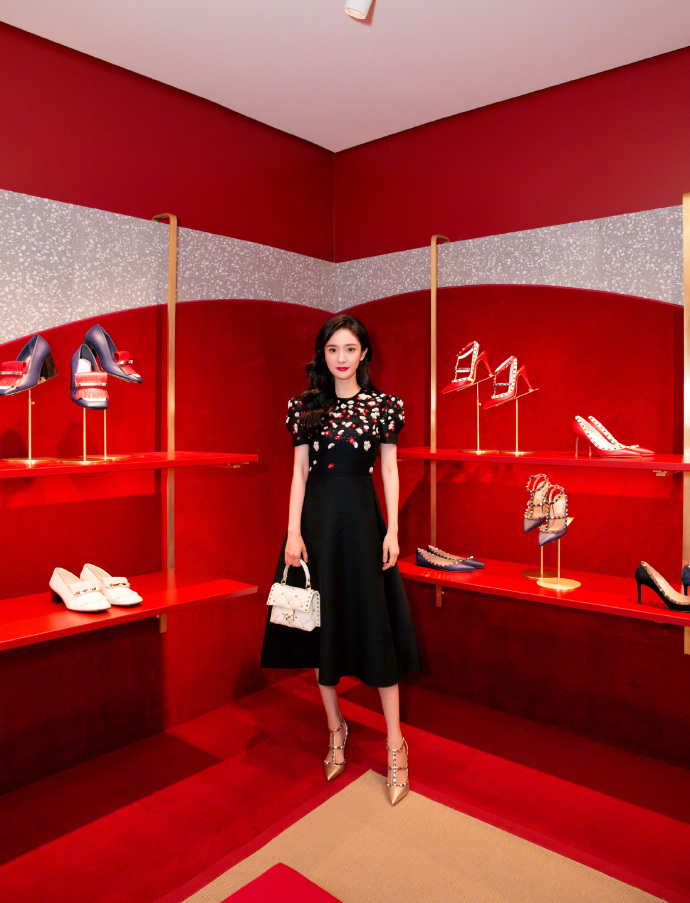 26日,楊冪前往東京參與Valentino的早秋時裝秀,她的工作室微博也分享一系列楊冪活動照。照片中,楊冪身穿該品牌的黑色連衣裙,上面點綴的亮片和腳下踩著的金色鉚釘高跟鞋,讓整體造型簡單卻不失設計,看起來十分優雅。