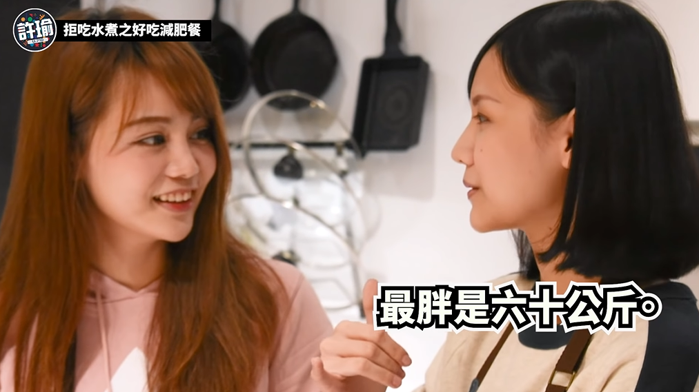 許瑜表示自己只要吃得稍微多一點便會發胖,「只要三餐正常我絕對胖」,之後在好友卉彤的詢問之下,她也坦承自己最胖曾經高達60公斤,更在影片中公開了自己的黑歷史照片,只見照片中的她還是長髮的階段,不過臉卻比現在豐腴,連腿部都明顯比現在粗了許多,完全判若兩人,而她也提到自己是容易胖下半身的人,「下半身大腿黏在一起會打架」!