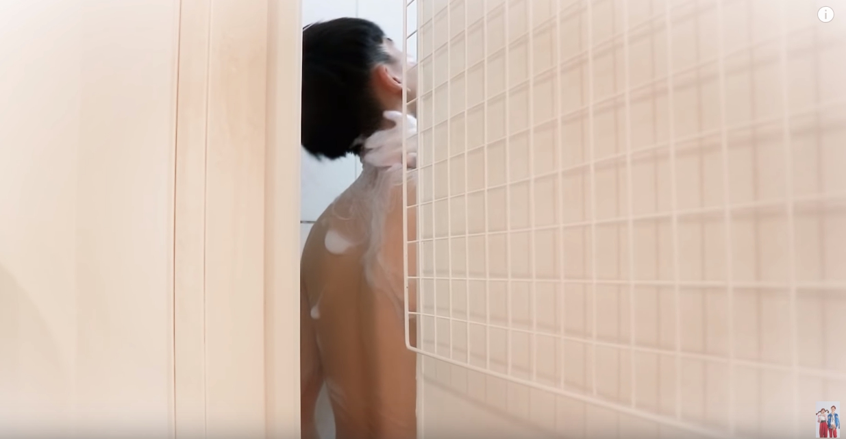 兩人玩得全身髒兮兮,又累又滿身大汗回家後,Andy頻頻碎念表示要先洗澡,家寧原本想調皮的搗亂他,突然畫面就帶到,兩人洗澡畫面,非常搞笑的是,Andy前面已經露出的兩點,洗澡畫面中還用泡沫遮掩,模樣十分有趣,洗澡畫面轉換到家寧,可以看到家寧的香肩、脖頸都充滿著泡泡,畫面十分香豔,只可惜洗澡畫面非常短,最後發現這是沐浴乳的業配影片。