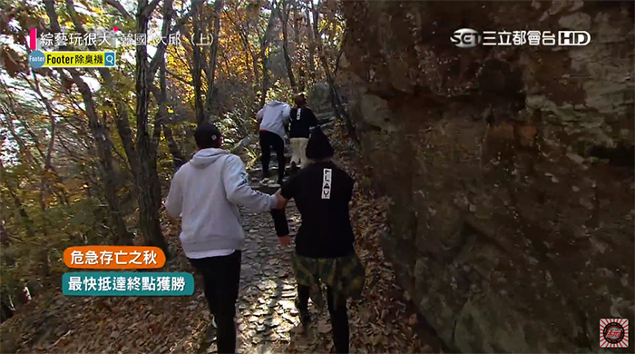 玩很大這次來到韓國大邱,最可怕的是,兩隊這次要從一座山跑到另一個山頭,沿途要闖3個關卡,全隊到達率先奪旗者獲勝。由於山路非常難走,坡度又非常陡,就連敖犬也累得直說:「各位觀眾,的很酸,真的不是你們想像的。」過程中小鬼和KID也不斷勉勵隊員要堅持下去。