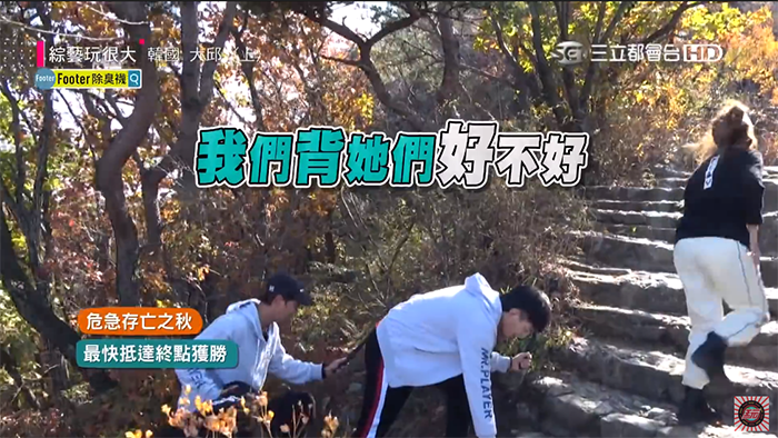 只不過,當天有病在身的郭靜,在完成最後一個關卡後體力幾乎完全透支,再加上感冒身體不適,小鬼趕緊出手救援「我背你好不好」,起初郭靜拒絕「不行,太重了」,小鬼直說「相信我!相信我!」就這樣背著郭靜抵達山頂。不過體力早已竭盡的敖犬都已經自身難保,反問丫頭「丫頭,妳背我好不好?」讓網友看了笑噴。