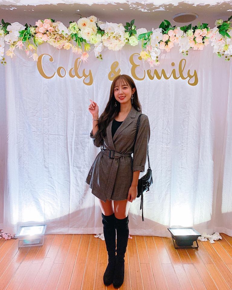 洪詩2005年在《我愛黑澀會》憑著亮麗外型、機智反應,在網路上擁有超高人氣,近日她和昔日《黑澀會》戰友勇兔一同參加婚禮,照片中可以看到洪詩放下及胸長髮,空氣瀏海襯托他的鵝蛋臉,內搭黑上衣,外面套上一件灰色襯衫式洋裝,同色系腰帶繫出纖細腰身,短版剪裁搭配膝上長靴,露出穠纖合度的蜜大腿,站在背版前拍照,比例看起來十分修長。
