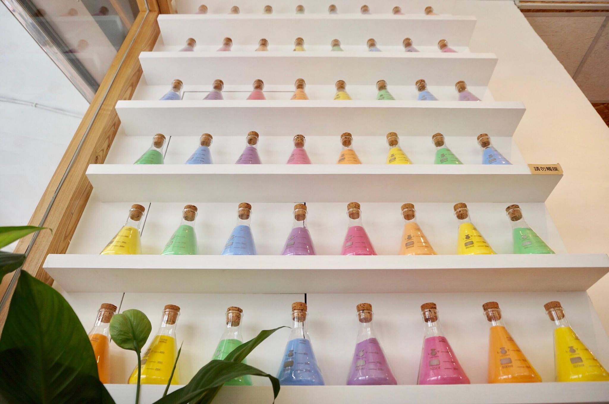 外觀雖然不怎麼起眼,但一進去後絕對會讓你驚呼出聲。因為裡面的打卡牆居然是用裝滿馬卡龍細沙的燒杯佈置,還有乾燥花、純白瓷磚、大片落地窗。色調溫暖舒適、採光明亮,非常地賞心悅目呢~