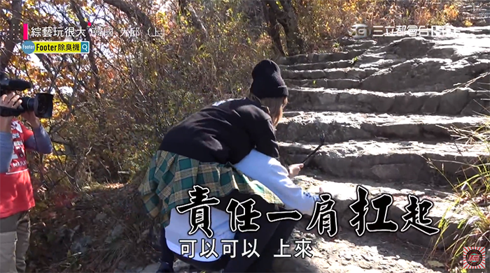 不過不巧,這次遠赴韓國大邱錄影,正好碰上郭靜感冒,天氣寒冷再加上體力較差,導致其中一個關卡要邊爬山邊玩遊戲,郭靜體力完全透支,身為隊長的小鬼暖心救援,不但不停對她激勵喊話,甚至最後還背著她完成最後一段路,沒想到郭靜卻挨轟「偶包太重」。
