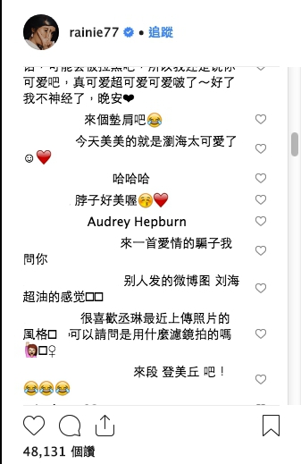 由於造型實在太經典,引起許多網友熱議紛紛留言表示:「我以為要拍檳榔姐妹花」、「來一首(台語歌)愛情騙子我問你」、「加兩個墊肩,完美」。復古的髮型雖然爆笑意外引起迴響,但也是有許多粉絲讚賞:「脖子好美喔~」、「今天造型美美的就是瀏海太可愛了」。