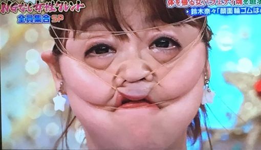 日本女星鈴木奈奈靠著甜美外型,以及少根筋的大姐形象聞名於日本綜藝界,她個人也寫下許多傻眼紀錄,像是過去在節目上亂寫國字、講不出英文字母的正確順序,連最基本的九九乘法表都被不出來,也讓她被封為新一代「白癡女王」,而她的瘋狂行為在日前又再度寫下新歷史,在網路上造成話題,她在節目上挑戰用橡皮筋纏臉,達成28條橡皮筋的驚人紀錄,臉部直接大崩壞,畫面簡直慘不忍睹。