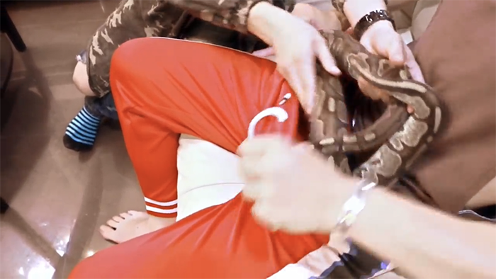 YouTuber「瘋男」惡整再出奇招 「巨蟒塞褲襠」引網驚:真的咬下去怎麼辦?